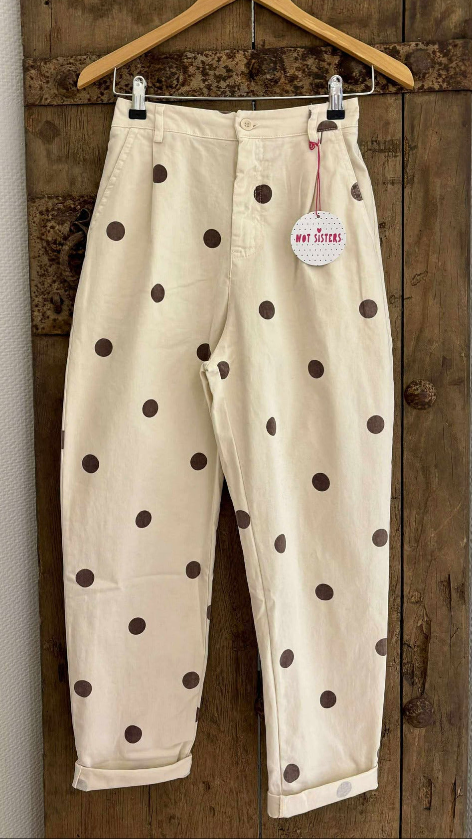 Super fede bukser i chino stil med prikker. Sidelommer og lynlås foran samt knaplukning.