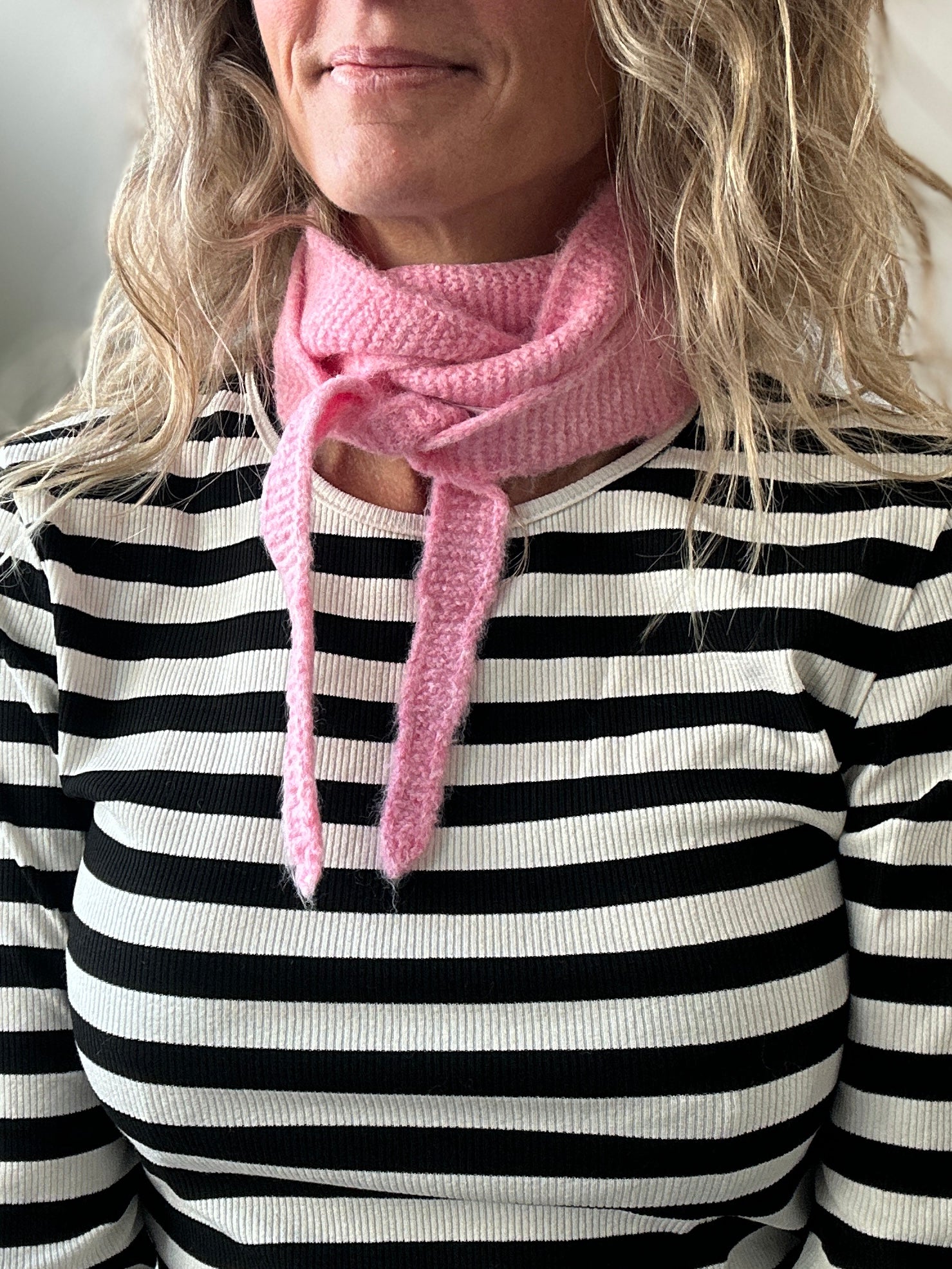 Lækkert lille strikket tørklæde, som bindes i halsen og giver dit outfit et smart udtryk. Tørklædet er enormt blødt og dejligt at have mod huden.