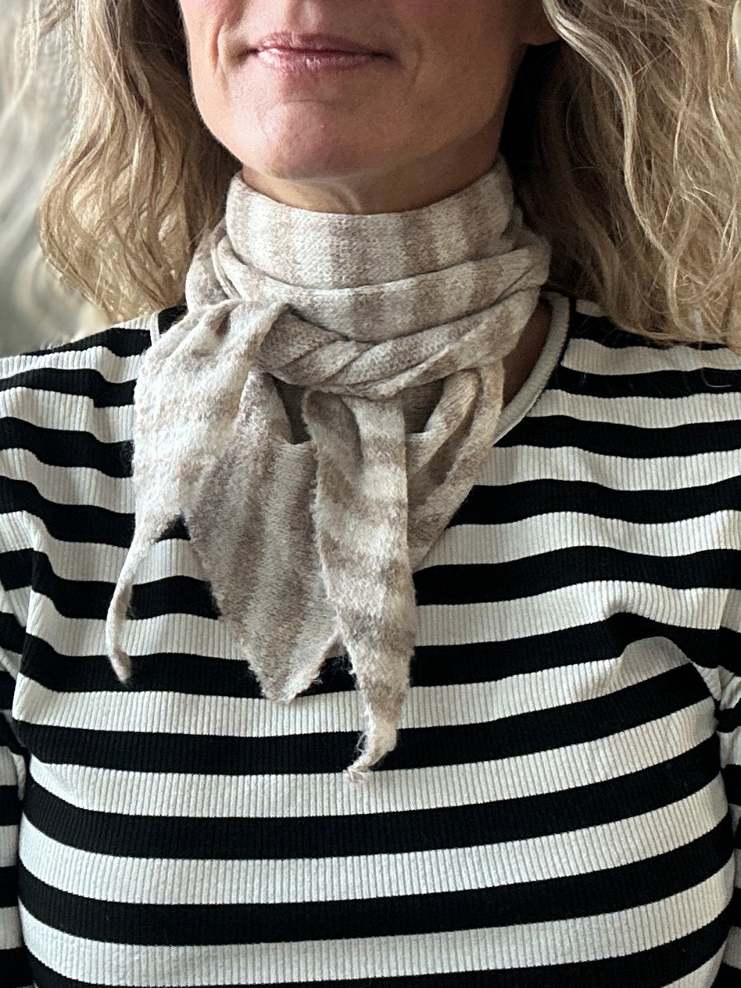 Stripe Knitted Scarf BEIGE