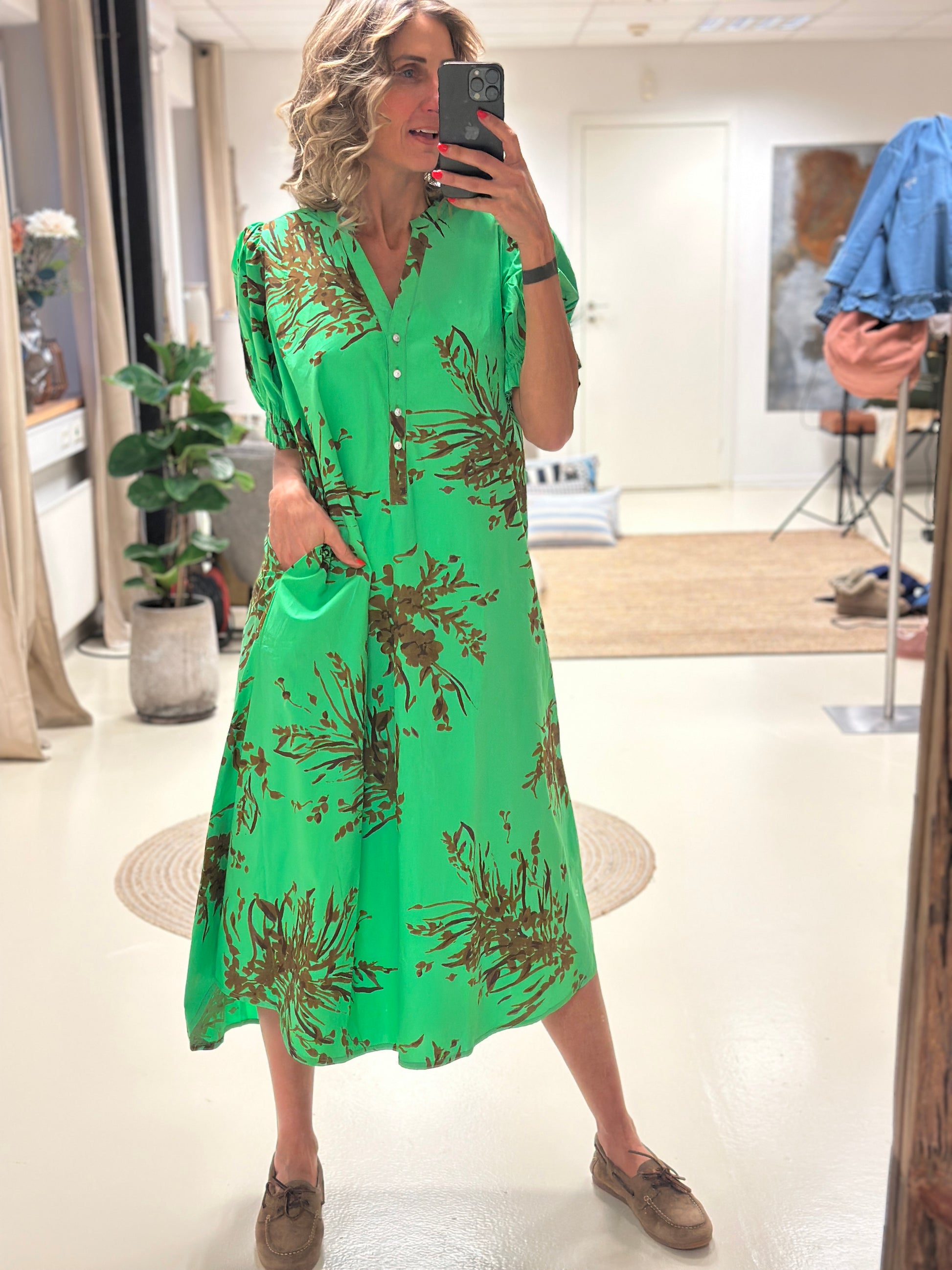 Tunø Print Dress GREEN (Preorder Levering April)